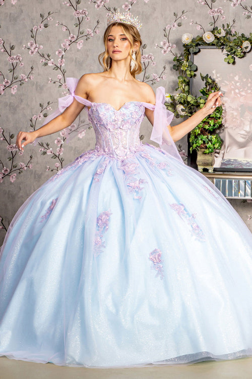 Blush Gold | Steel Blue Glitter Embroidered Corset Ball Gown CDCB102 -